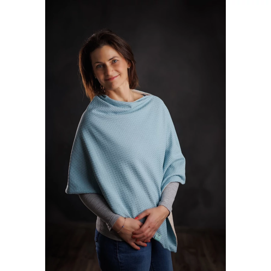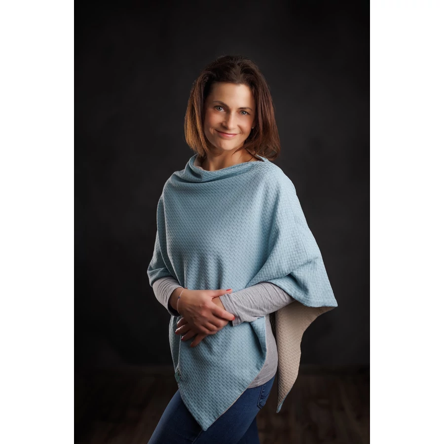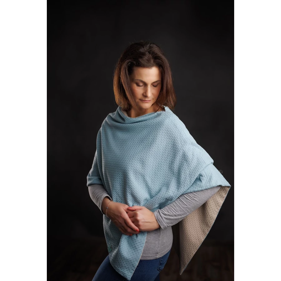 Acélkék – bézs színű kifordítható poncsó