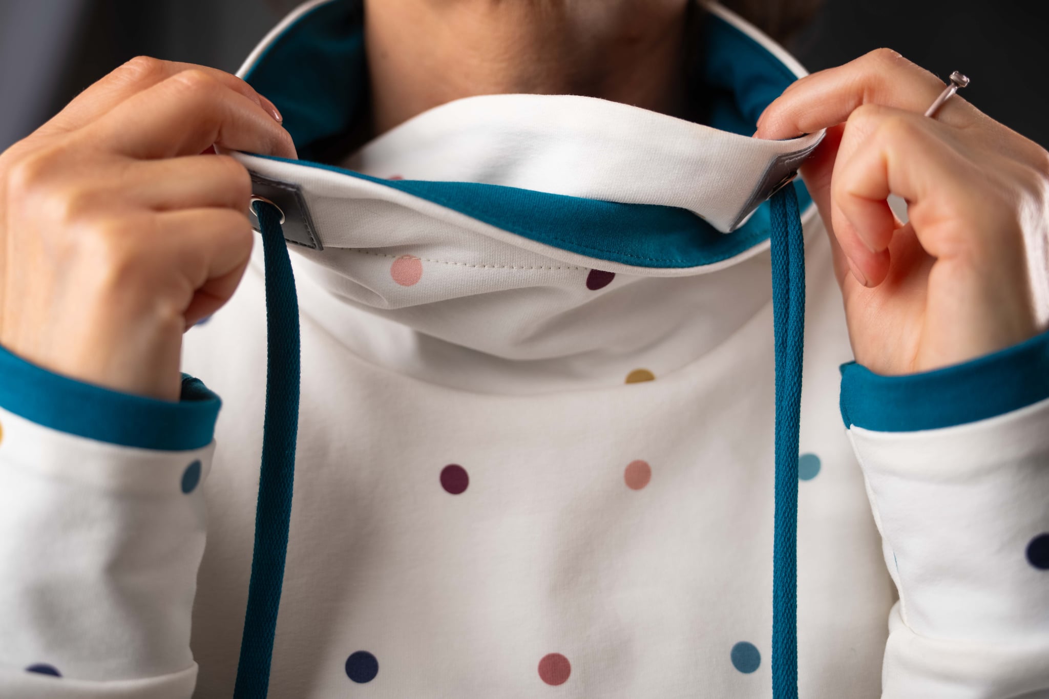Kényelmes,szabás vonalban rejtett zsebekkel,és magasított galléros nyakrész,melyben összehúzó zsinór van,ez teszi még varázslatosabbá.