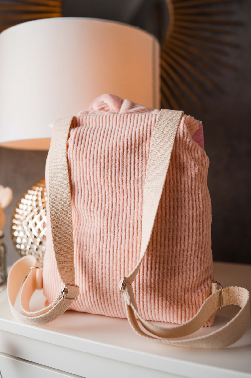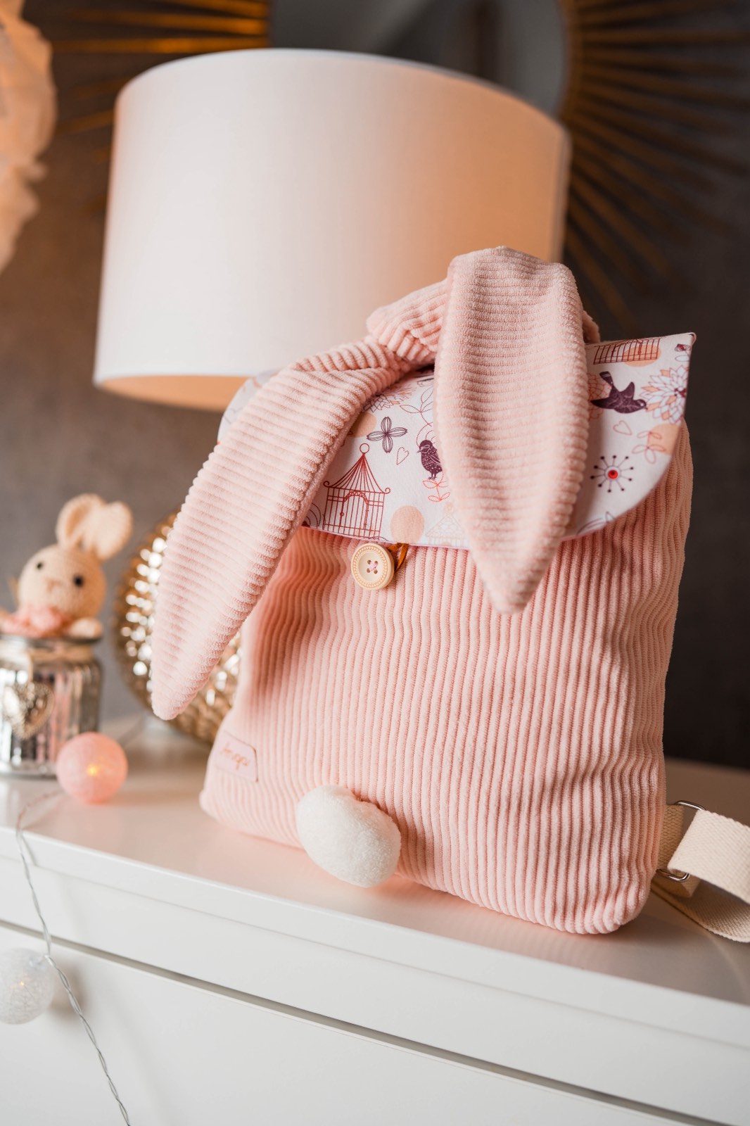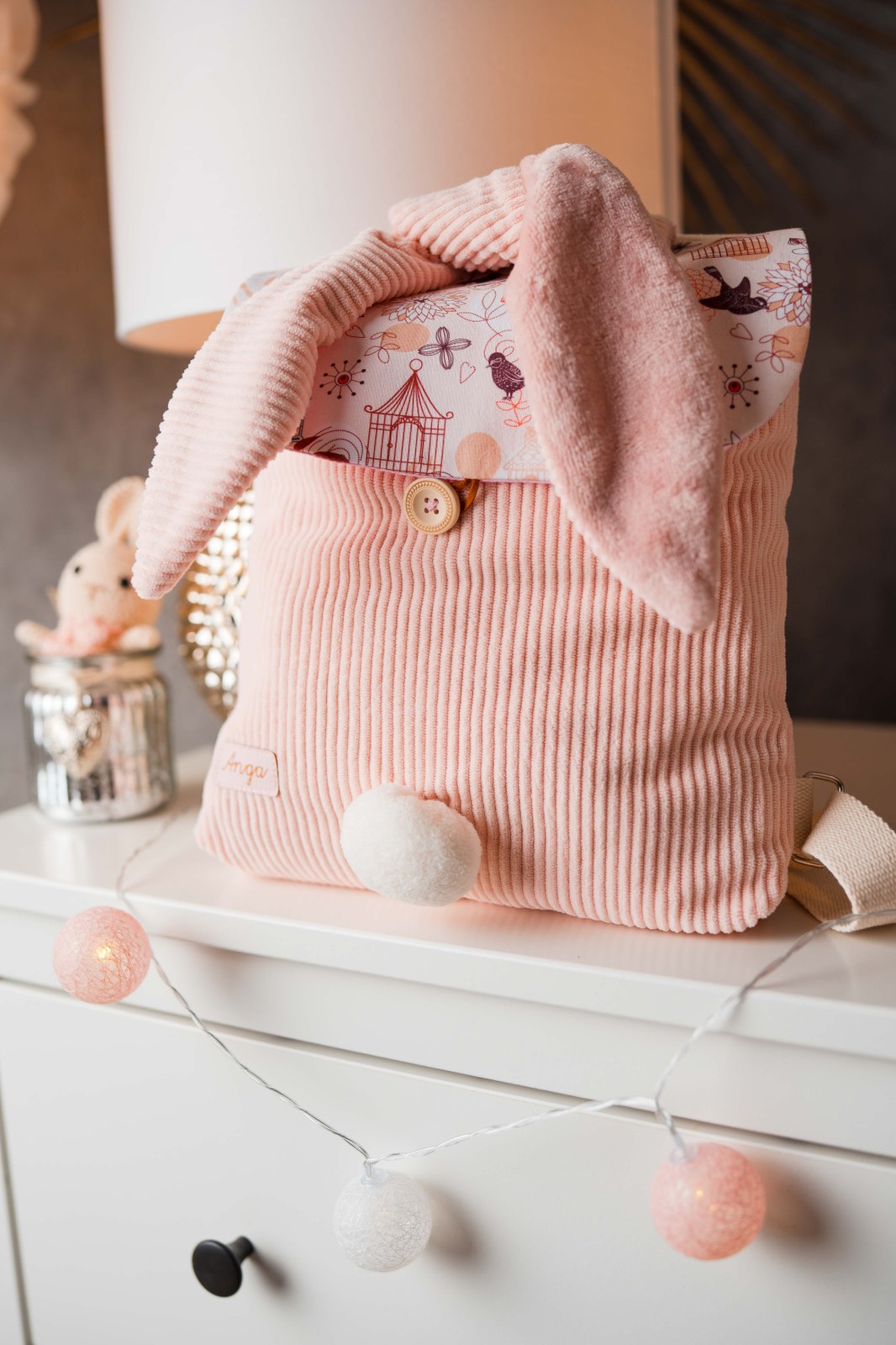Hosszú fülecskéi könnyen megköthetők,így ha nem akarod a hátadra venni kézben is kényelmesen hordhatod.